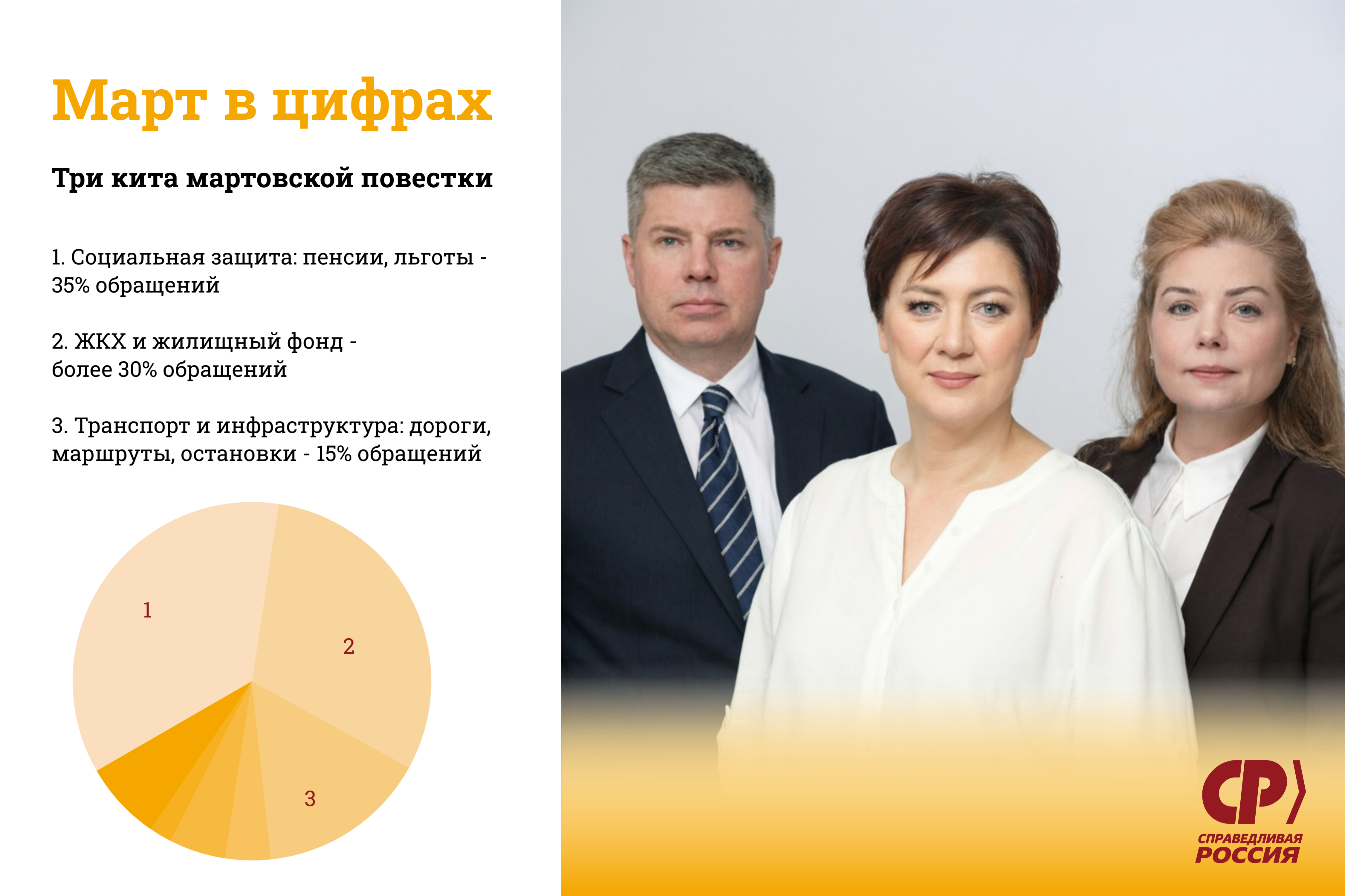 1. Социальная защита: пенсии, льготы, соцподдержка - 35% обращений