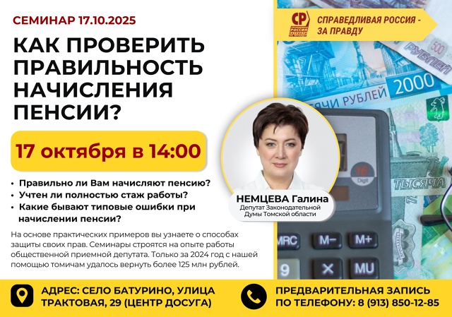 17 октября в 14:00 в Батуринском Центре досуга пройдёт бесплатный семинар на эту же тему – "Как проверить правильность начисления пенсии?".