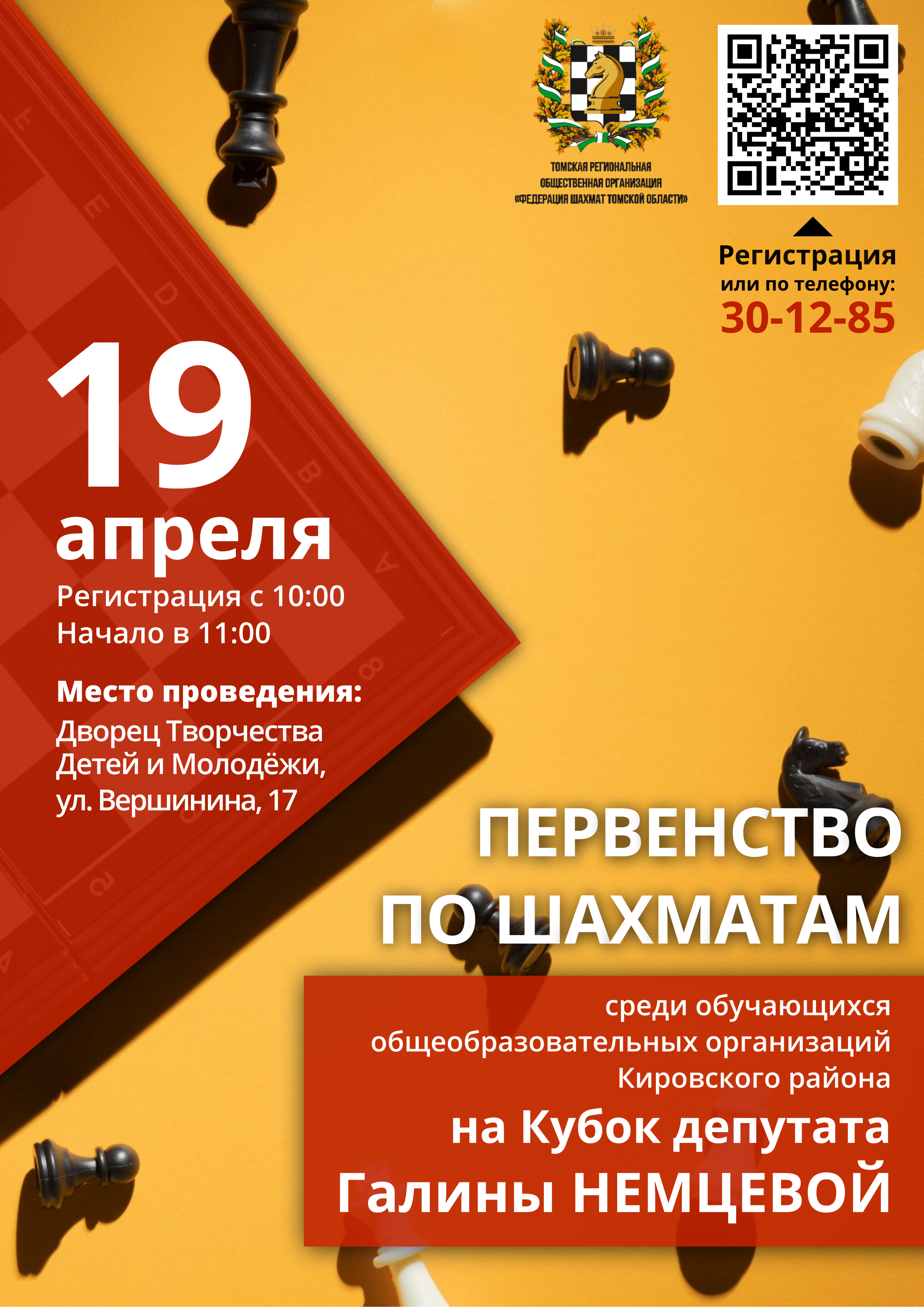 19 апреля стартует Первенство по шахматам среди обучающихся общеобразовательных организаций Кировского района. Во Дворце творчества детей и молодёжи соберутся юные шахматисты, чтобы проверить свои силы, характер и стратегическое мышление. Регистрация участников стартует в 10:00, начало состязаний — в 11:00. Соревнования пройдут в личном зачёте, отдельно для мальчиков и девочек, по швейцарской системе в семь туров с контролем времени.